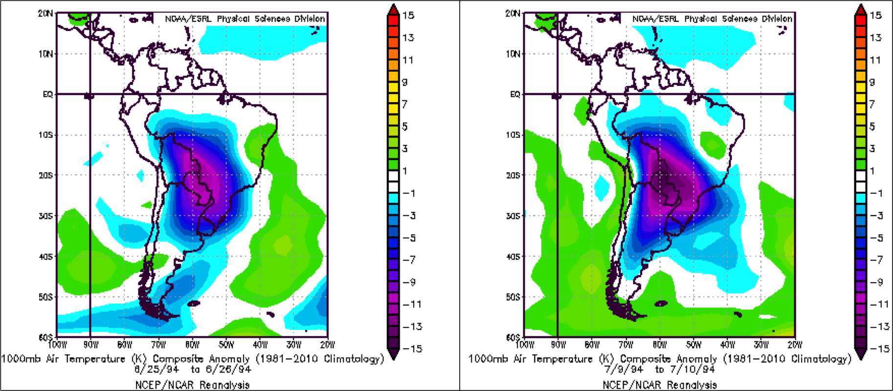 Over the past 20 years or so, there has not been any crippling freezes. Global temperature trends, as well as the northward migration of coffee farms, have helped prevent issues. The last time we saw a major freeze was 1994, which suffered a dose of “double trouble” with dual freezes on June 25th-26th and July 9th-10th. See the maps below: