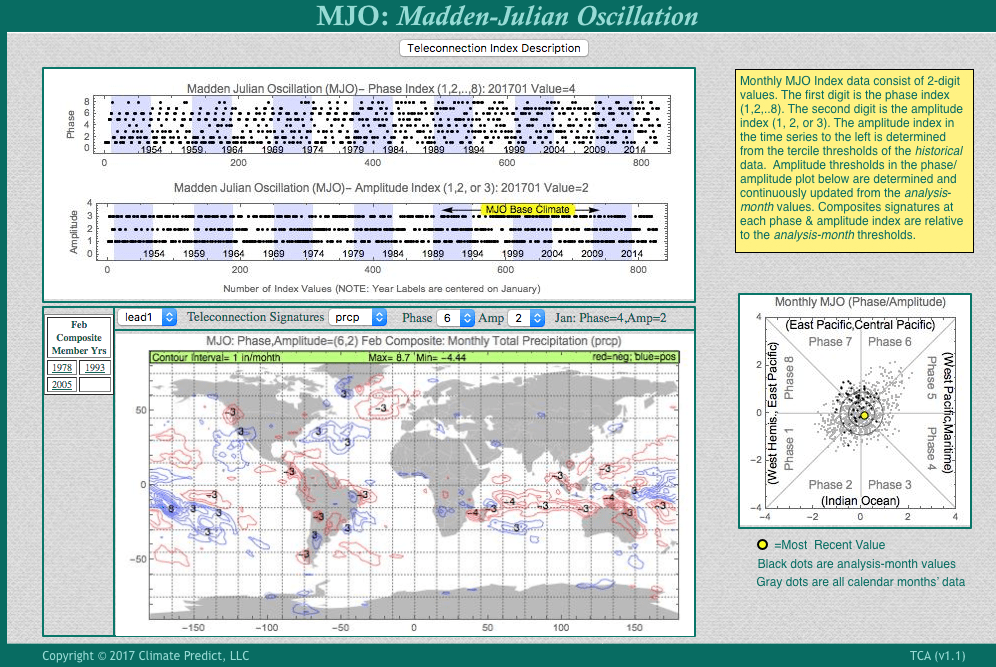 The MJO will be fairly strong from phase 5, then progressing to phase 7-8 the middle part of February.The average value for the next 2-3 weeks will be in phase 6. One can see, below the wetter phase (blue) for coffee areas of Brazil.