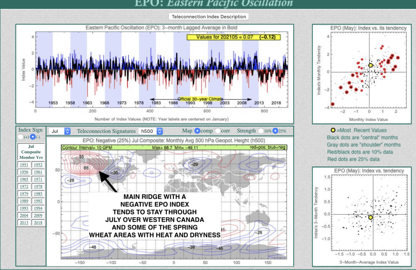 2. How can forecasted a negative EPO (western ridge and block) that would allow easing corn belt rains but stress spring wheat crops and Canola out west
