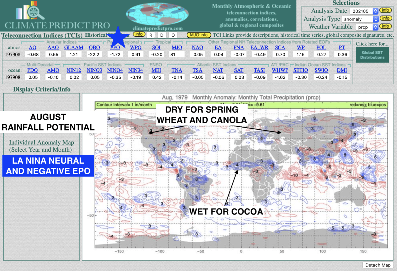 PLEASE SEE THE VIDEO ABOVE AND HOW WE CALLED THE ENDING OF THE MIDWEST CORN DROUGHT WEEKS AGO BUT A CONTINUATION OF CROP PROBLEMS FOR CANOLA IN CANADA AND SOME SPRING WHEAT AREAS OF THE WORLD. I ALSO DISCUSS, COCOA, COFFEE, AND OVERALL CLIMATIC VARIABLES THAT HAS CAUSED THE CRB INDEX TO SELL OFF SOME