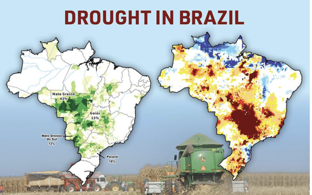 The video above discusses the weather extremes affecting South America’s soybeans, coffee, and sugar crops.