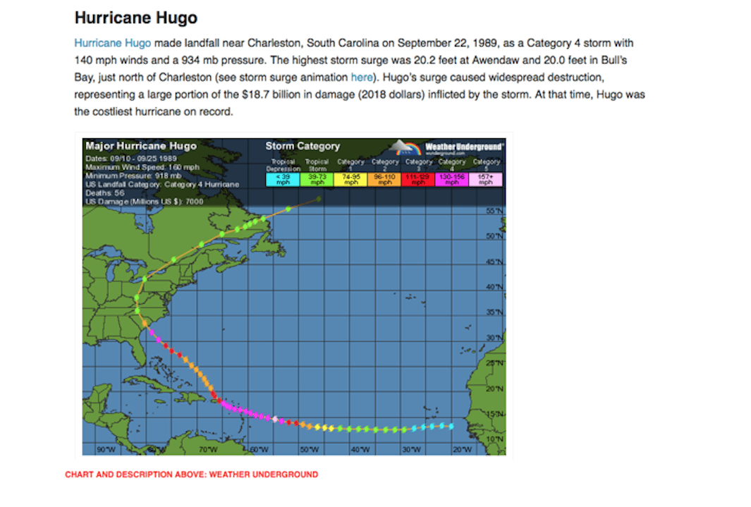 Hurricane Florence shows signs of moving further south. So much of the South Carolina coast will see some devastating flooding. The last big hurricane to hit South Carolina was Hugo in 1989