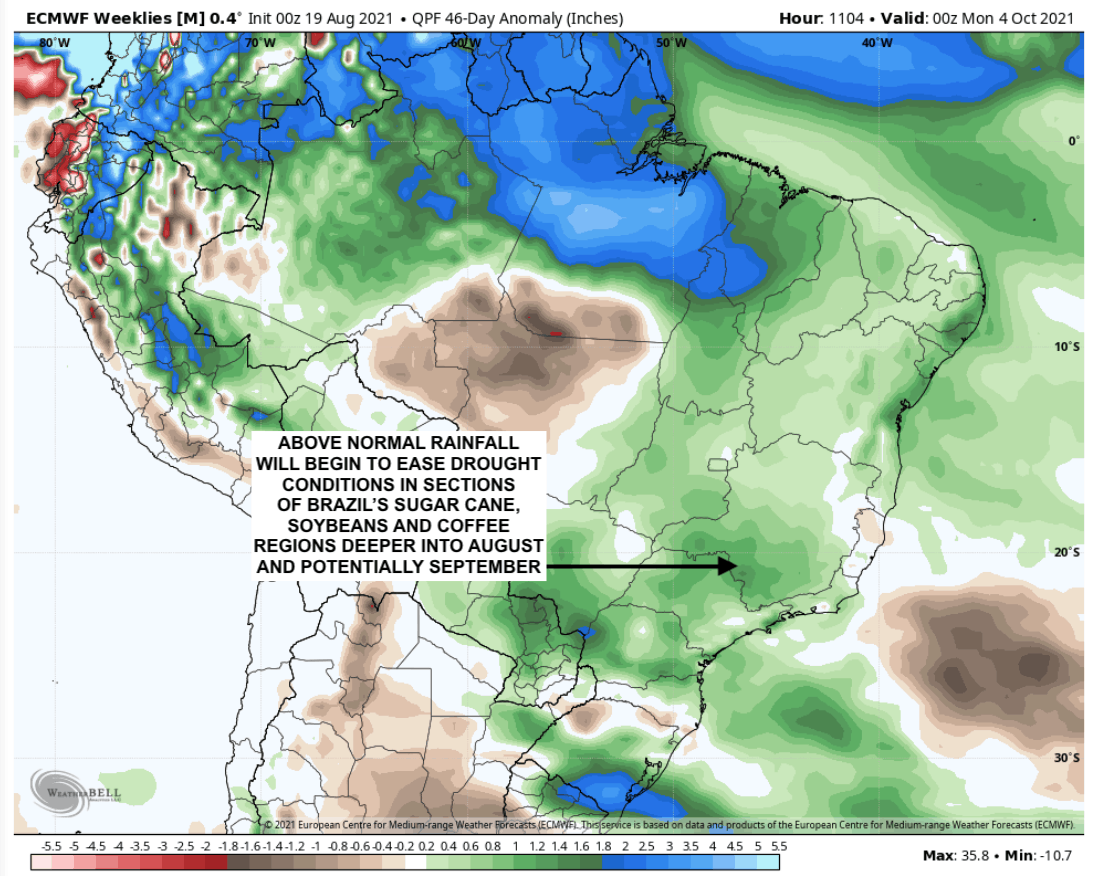 RAINFALL OF 300-500% OF NORMAL FOR BRAZIL COFFEE AND SOYBEAN AREAS IN ABOUT 8-10 DAYS INTO EARLY SEPTEMBER