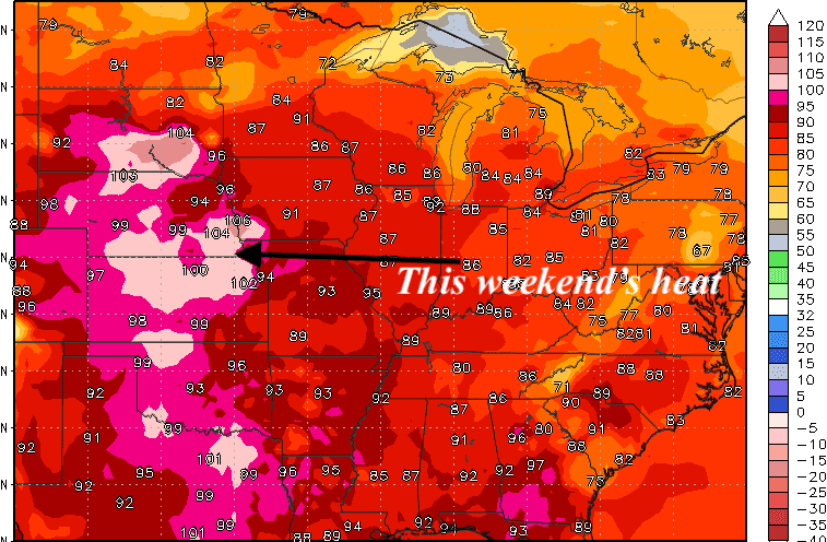 There are very few dry areas in the Midwest corn and soybean belt. While I mentioned a few days ago that warm night-time low temperatures over 50% of the corn belt could lower corn yields a bit, this is not really in the cards for more than just a few days. Hence, a potential record corn crop could indeed pressure prices below $4.00 after the August USDA crop report and/or during harvest. For soybeans, while I was cautiously bullish in last week’s BestWeather Spider, I am going to advise liquidating any long positions in the ETF (SOYB). Some of you emailed me you bought soybean futures. I do not have a lot of confidence prices will go higher, so I am advising getting out of any long positions.