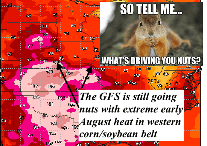 If the GFS is correct, a potential bull market in soybeans and corn prices staying above $4.00 would be likely. Right now, I do not believe this.