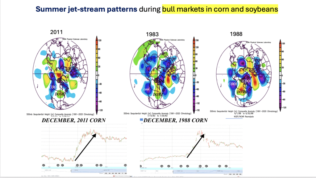 However, it is usually during La Niña events or rapidly weakening El Niño events (such as in 1983) that the extreme major heat and dryness dome persists in summer. This was discussed in my grain video last week.
