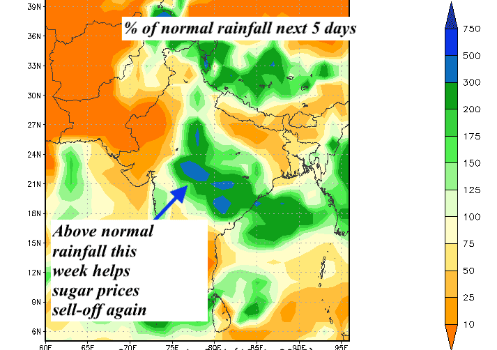 In sugar, the Spider is neutral to slightly bearish. A rebound in global sugar production and an excellent Indian Monsoon is bearish vs ideas that Brazil will convert more sugar cane to ethanol and biofuels. Otherwise, the Spider would be very bearish.