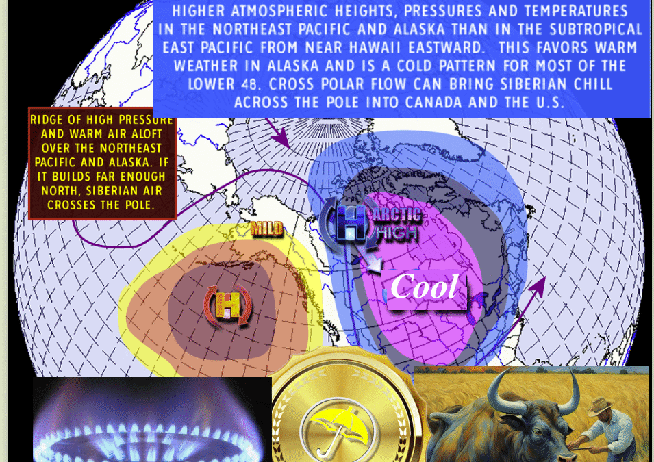 Introduction: The EPO index (map on top of the page) is acting as a bearish influence on natural gas, corn and soybean trading