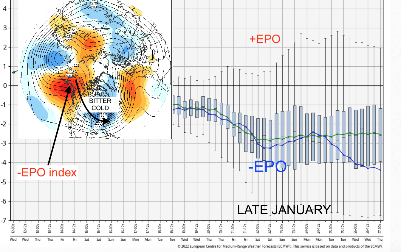 From the warmest December on record to perhaps the coldest January in some areas. The report below discusses how teleconnections such as the MJO, EPO index, and La Nina are causing major volatility in the natural gas market